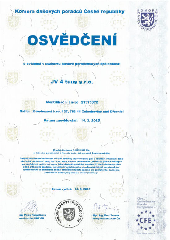 Jsme zapsáni v evidenci v seznamu daňově poradenských společností.